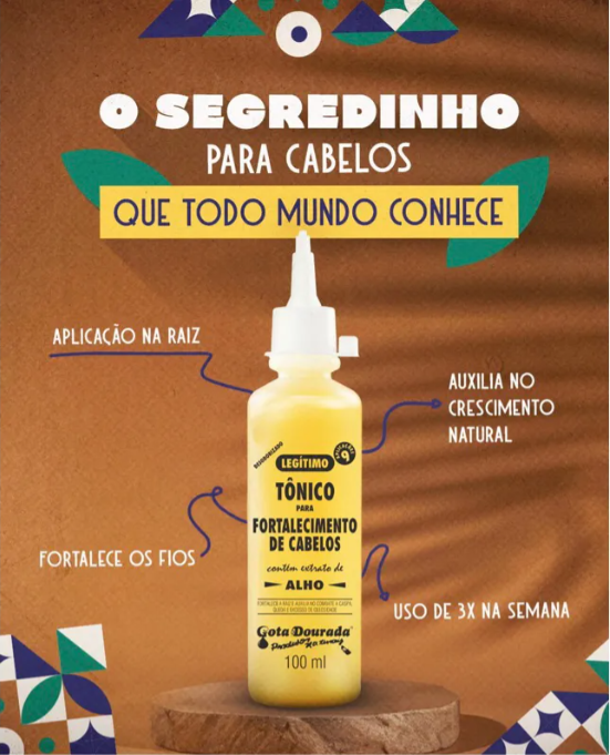 O Gota Dourada é um dos tônicos capilares mais vendidos do Mercado Livre. Sua fórmula é conhecida por estimular o crescimento saudável dos fios e fortalecer a raiz.
