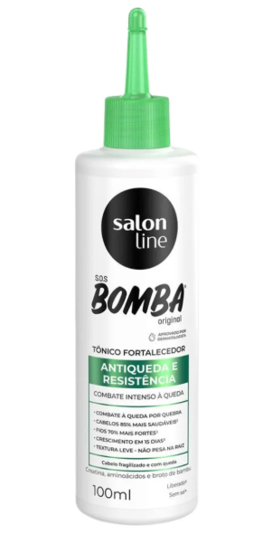O Tônico SOS Bomba da Salon Line é conhecido por acelerar o crescimento dos fios e reduzir a quebra. É um dos mais comentados e vendidos da categoria.
